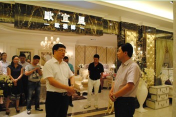 丁锋一行在参观欧宜风公司的展示厅时,边参观边咨询家具的材质、价格、内外销比例、营销网络,欧宜风公司总经理黄福青一一作了解答。参观后,海安考察团对玉环欧式古典家具赞不绝口,并欢迎玉环企业家去海安办厂、开发家具商场。