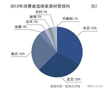 由此预测,布艺、皮艺、板式这三种材质的家具在2014年仍可能是消费者的主选,消费者选择购买家具时,或许布艺材质的家具几率更大。
