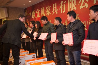 1月19日,浙江欧宜风家具有限公司在楚门海景大酒店举办新年酒会,回顾总结公司2013年的生产经营情况,提出了2014年公司的发展思路,对评选出的先进个人和集体进行表彰。