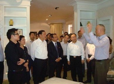 蔡奇部长等领导还参观了诺贝公司的样品展示厅,了解家具的材质、风格、价格、产品的推介、国内外市场的拓展等,并询问家具企业在生产经营过程中最大的困难是什么。