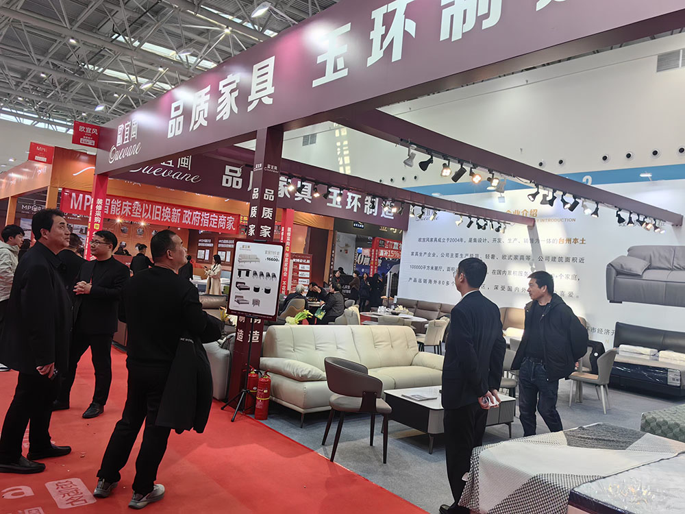 活动中,协会会长黄福青率队深入企业展位,与君庭家居负责人开展交流。黄会长详细询问企业新品研发、市场布局及参展成效。他强调:“台州家博会是企业直接面向本土消费者,是企业布局台州区域市场的战略支点,也是展示玉环品牌的一个良好契机。”