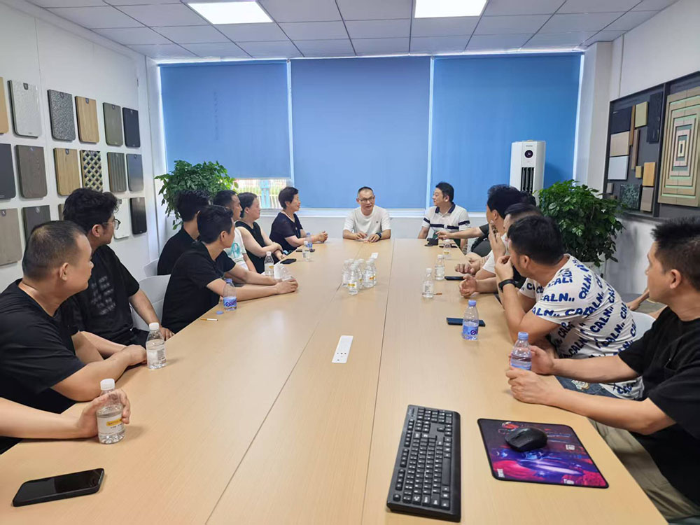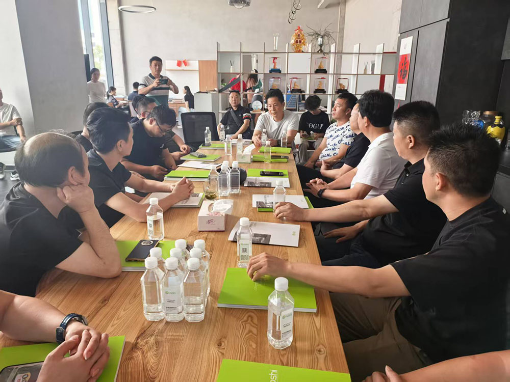 工厂参观结束后,举行了专题座谈交流会。抐图高定董事长何光雄分享了企业的发展历程、管理心得以及对未来市场的研判。双方就行业发展趋势、市场挑战与机遇、新技术应用等共同关心的话题展开了深入探讨。玉环企业代表积极提问,分享自身发展困惑,并表达了向温州优秀同行学习的意愿。
