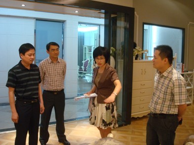 6月7日,安徽省霍邱县副县长苏吴一行在副县长郭燕飞的陪同下考察台州港源家具有限公司。