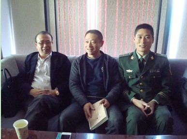 台州消防支队支队长王伟(中)县消防大队大队长宋辉(右)县家具行业协会会长胡再贵(左)亲切交谈