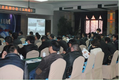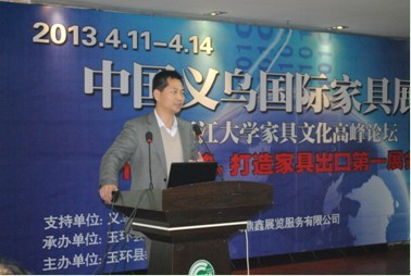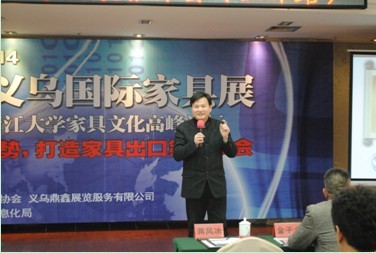 义乌鼎鑫展览服务有限公司执行董事陈涧根运用图片和数据介绍了义乌经济发展的三个特色;阐述了举办2013义乌国际家具展的十大优势;强调了2013义乌国际家具展60%是外销,40%是内销,60%是经销商,40%是消费群体;发布了2013.4.11-4.14义乌国际家具展为玉环家具企业搭建了走向世界的大舞台,欢迎玉环家具企业参加2013义乌国际家具展抢占国内外市场份额;并表态给企业最好的服务,义乌国际家具展会给玉环家具企业最好的商机。
