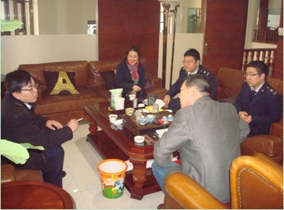 1月16日,台州市出入境检验检疫局副局长束伯民、检验检疫处处长卢玲虹在玉环办事处副主任潘成浩的陪同下来家具企业调研。