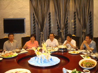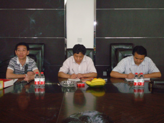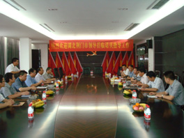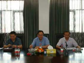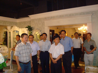 中共荆门市委黄书记(左二)与玉环家具企业老总交流
