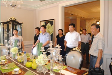丁锋一行在参观欧宜风公司的展示厅时,边参观边咨询家具的材质、价格、内外销比例、营销网络,欧宜风公司总经理黄福青一一作了解答。参观后,海安考察团对玉环欧式古典家具赞不绝口,并欢迎玉环企业家去海安办厂、开发家具商场。