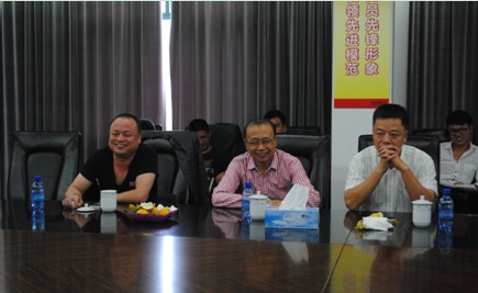 县家具协会会长胡再贵(中)楚门镇常务副镇长周也林(右)王海鹏老总(左)