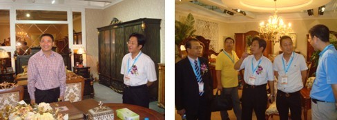 开幕式结束后,副县长施红兵、外经贸局局长王云勇、经贸局纪委书记曾子文等领导在县家具协会会长胡再贵、县家具协会秘书长林国明的陪同下走访了玉环参展企业的展厅,每到一家企业的展厅,副县长施红兵等领导都细致地参观展厅里摆放的各式家具,并与参展企业的老总亲切交谈,了解家具的材质、风格、价格,询问产品的推介、国内外客户、经销商参观状况及内外市场的拓展,并预祝参展企业在这次展会上获得更多的订单。