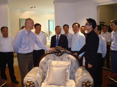 蔡奇部长等领导还参观了诺贝公司的样品展示厅,了解家具的材质、风格、价格、产品的推介、国内外市场的拓展等,并询问家具企业在生产经营过程中最大的困难是什么。