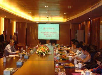 11月5日,省出入境检验检疫局调研组一行在副主任唐晓华的带领下,来到浙江天源家具有限公司,对玉环家具产业发展和出口情况进行调研。台州市出入境检验检疫局副局长周坚群、玉环办事处主任马畅武陪同调研。
