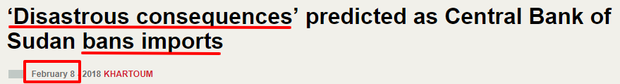 外媒报道:苏丹中央银行禁止进口,预计会造成“灾难性后果”