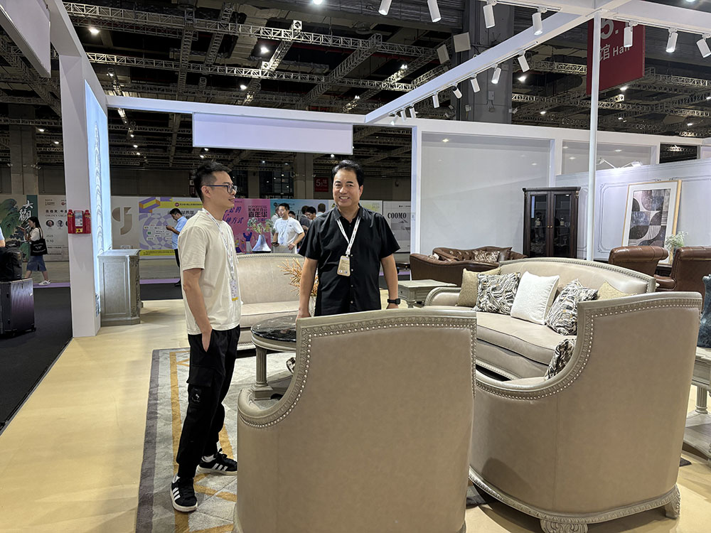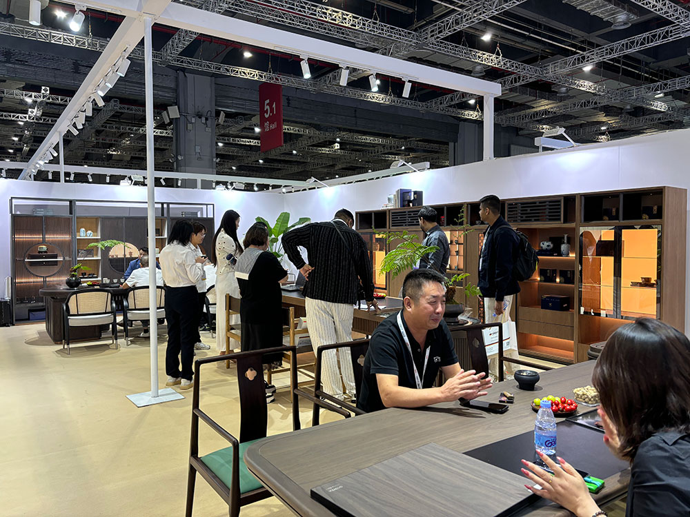 本次展会来自全国各地的经销商团以及多个国家和地区的海外采购团纷纷莅临现场,展现出极高的专业性和采购意愿。海外客商对“玉环家具”系列的产品颇感兴趣。他们频频驻足于展位前,不仅对家具的工艺品质表示赞赏,还就材料环保性、产能供应、定制可行性等具体事宜与现场企业代表进行了洽谈。不少海外采购商表达了初步合作意向,展现出玉环家具在国际市场上的吸引力。