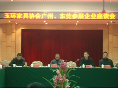 座谈会上,县家具协会会长胡再贵分析了玉环家具行业的形势;指出了企业在生产经营中存在的困境;通报了今年3月玉环有41家企业参加广州家具博览会,12家企业参加东莞家具展览会,展位面积达17700平方米。并要求参展企业不能压价竞销,不能抄袭仿样;展会期间多考察国内外其他参展商的展品,作市场调研和分析,听取相关的专题讲座,捕捉信息;展会期间和来回路上注意安全。胡再贵还提议家具企业老总出资购买消防登高车,以实际行动加强消防安全工作。