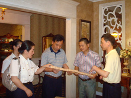 座谈会上,天源公司总经理徐邦奎简介了公司的发展概况。公司成立于1996年6月,是以出口为主的股份合作民营家具企业,4个股东精诚团结、努力拼搏,带领员工经过15年的艰苦创业,公司不断发展壮大,已成为玉环家具行业中的龙头企业,"源升"牌系列家具获得了浙江省名牌产品、浙江省著名商标,公司获浙江省出口名牌企业等荣誉称号,公司本着"以人为本、勇于创新、追求卓越、精益求精"的经营理念,依托强势品牌,努力拓宽市场渠道,并以其钻石般的质量,合理的价格,优良的售后服务赢得了消费者的青眯,目前,营销网络遍布海外六十多个国家,及全国各大中城市。