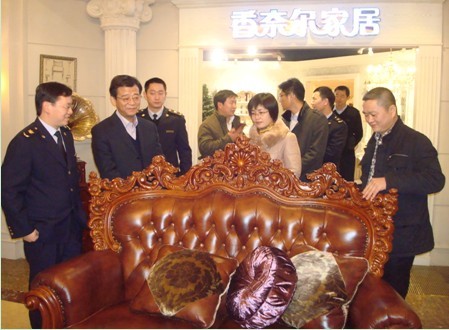 俞一江副局长一行在天源家具有限公司总经理徐邦奎的陪同下视察了样品展示厅,参观了党建活动中心,详细了解产品的材质、价格、营销渠道及2012年的生产经营情况。