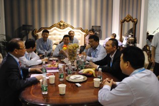 胡再贵陪同县领导张加波、杨良强、王良青、柯寿建、汪云傲和部门领导走访看望我县参展企业。