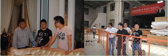 6月18日上午,印度尼西亚客商一行4人在副县长郭燕飞、商务局局长王云勇、县家具协会常务副会长王通全的陪同下考察国森公司的营销展示厅、大风范公司的生产车间、诺贝公司的生产车间和样品展示厅。